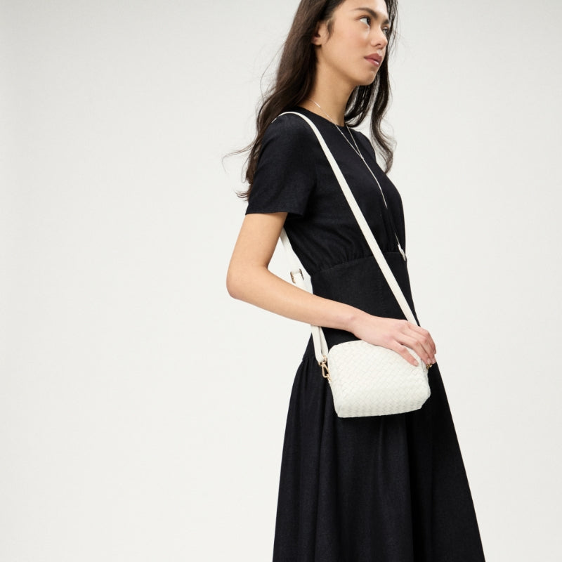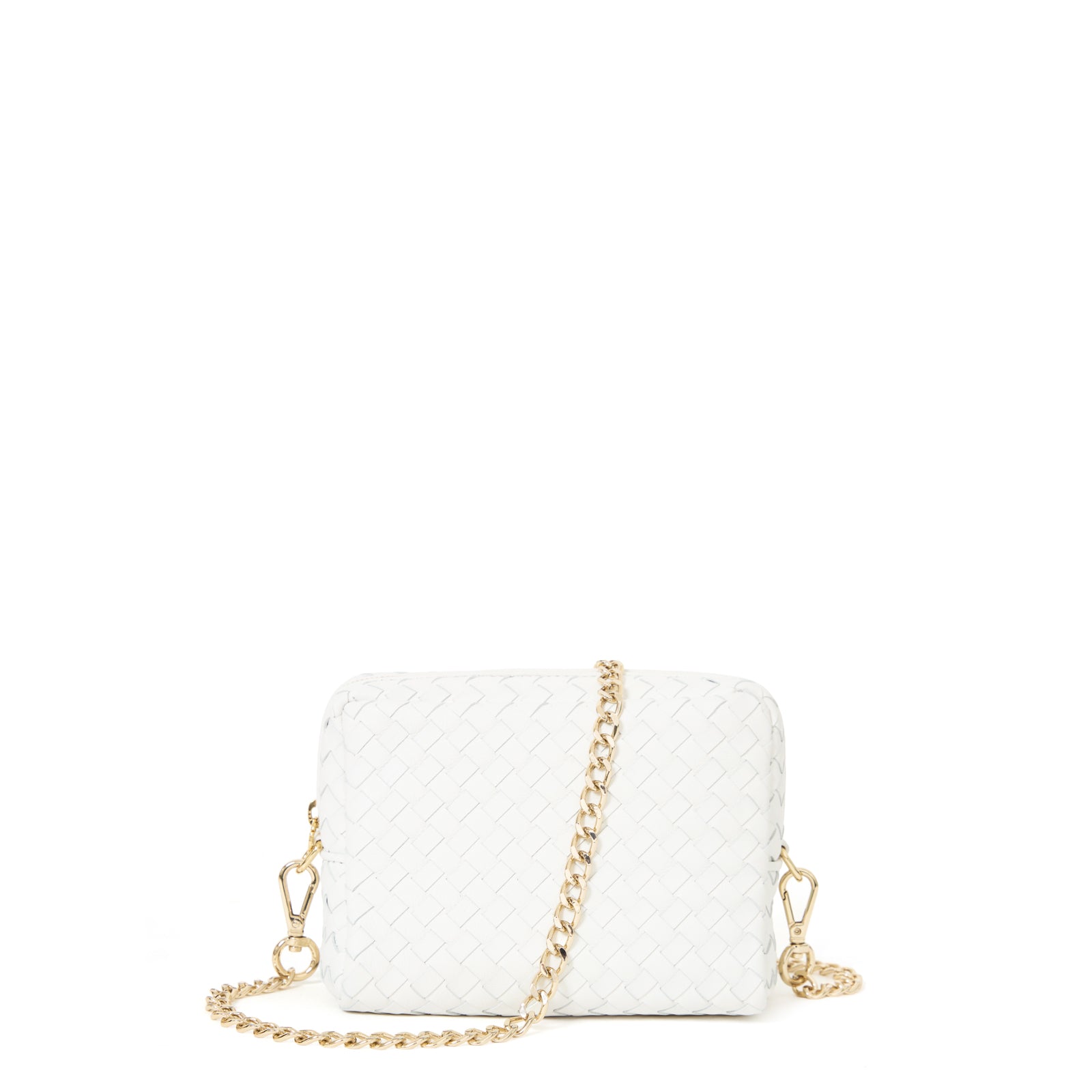 The classic convertible wristlet with an elegant, woven leather upgrade. This Mini Woven Bag was designed to work with everything from jeans to your little black dress, featuring 100% Nappa leather, a satin interior and two removable straps to convert from a wristlet into a crossbody purse - a polished, hands-free look either way.