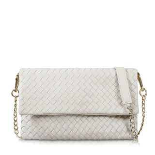 Small and sophisticated, The Julia is a leather woven clutch bag crafted entirely in Nappa leather. The top flap features a secure snap closure and the interior is leather-lined with two inner zip pockets and a mobile phone pocket. This woven clutch bag also comes with a detachable crossbody strap, easily transforming it from day to nighttime use.