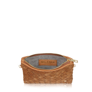For the true minimalist, the Meggy Mini Woven Bag is a slim crossbody with just enough room for a phone and small accessories, like credit cards or keys. Woven in Le Marche, Italy from soft suede leather, this comes with a detachable gold chain and is lined in durable canvas. An optional leather strap is also available to purchase.