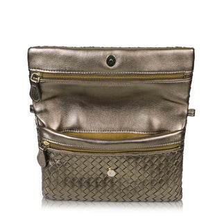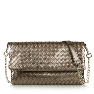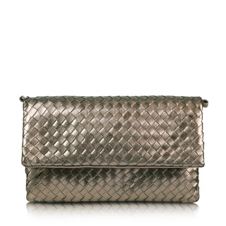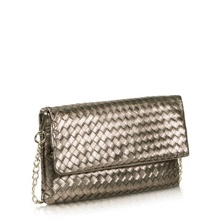 Small and sophisticated, The Julia is a leather woven clutch bag crafted entirely in Nappa leather. The top flap features a secure snap closure and the interior is leather-lined with two inner zip pockets and a mobile phone pocket. This woven clutch bag also comes with a detachable crossbody strap, easily transforming it from day to nighttime use.