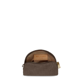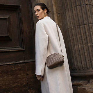 Easily tuck away everything you need for the day in the convertible Grazia Mini Bag. Artisan-made in Le Marche, Italy, this woven leather crossbody features a half-oval shape with gold zipper, interchangeable wristlet leash, and long adjustable leather strap. The unlined interior is simple yet spacious, convenient for essentials like a phone, keys, card case, and small accessories.