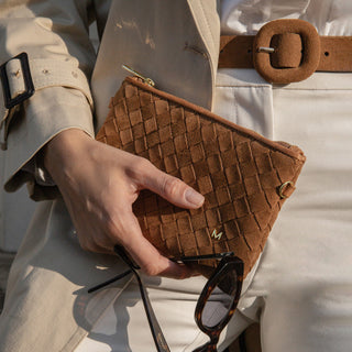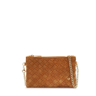 For the true minimalist, the Meggy Mini Woven Bag is a slim crossbody with just enough room for a phone and small accessories, like credit cards or keys. Woven in Le Marche, Italy from soft suede leather, this comes with a detachable gold chain and is lined in durable canvas. An optional leather strap is also available to purchase.