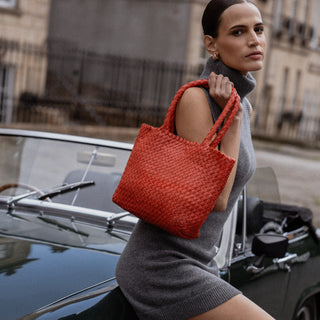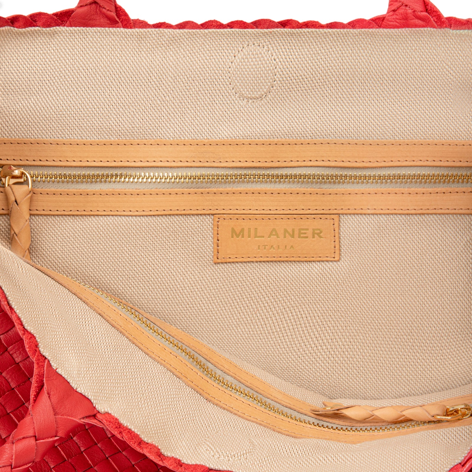 The Mini Elena handbag is a smaller but spacious Elena tote that's perfect for everyday use. It features 100% cotton lining, a magnetic top closure and two zippered interior pockets to keep every belonging organized. Handmade by Italian luxury artisans, just for you.