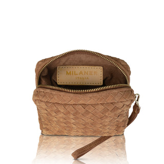The classic convertible wristlet with an elegant, woven leather upgrade. This Mini Woven Bag was designed to work with everything from jeans to your little black dress, featuring 100% Nappa leather, a satin interior and two removable straps to convert from a wristlet into a crossbody purse - a polished, hands-free look either way.