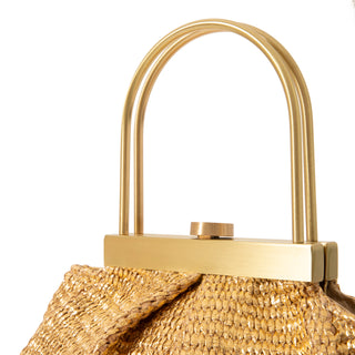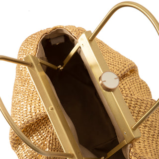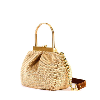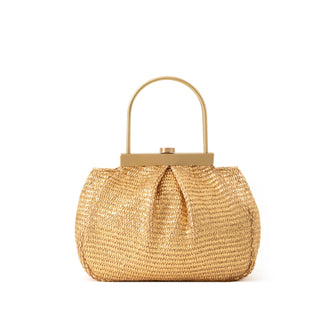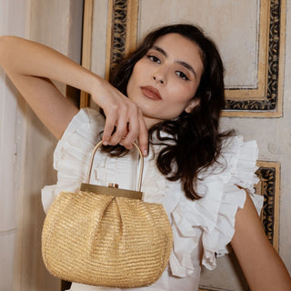 Structured, lightweight, and perfectly suited for summer, the Morgan Raffia Bag is handcrafted from natural raffia in Tuscany, Italy. A rigid gold clasp and small interior pocket keeps your essentials secure, while a removable chain strap transitions seamlessly from morning brunch to an evening wedding.