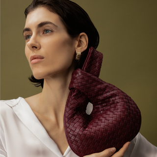 Perfectly suited to round out a look, the Rebecca Mini Woven features our iconic woven Nappa leather in a curved clutch style. Lined in soft suede with a magnetic closure and zippered inside pocket, this Italian-made handbag opens to reveal a roomy interior (fitting keys, phone, and a small wallet) before easily cinching together to glide over the wrist.