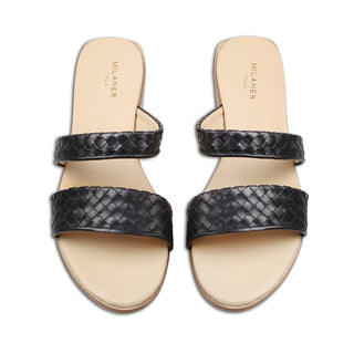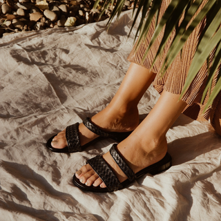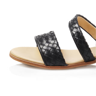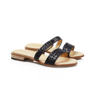 These woven leather sandals are perfectly suited to any summer occasion. The Simone feature two slip-on straps and are constructed entirely of supple calf and goatskin leathers that soften and mold perfectly to your feet with every wear. These woven flat sandals are handcrafted by Italian artisans in striking detail.