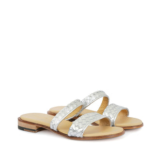 These woven leather sandals are perfectly suited to any summer occasion. The Simone feature two slip-on straps and are constructed entirely of supple calf and goatskin leathers that soften and mold perfectly to your feet with every wear. These woven flat sandals are handcrafted by Italian artisans in striking detail.